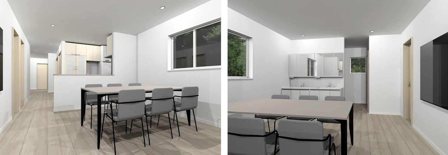 各部屋が入居者のプライベートスペースになりプライバシーを守ります。トイレやキッチン、風呂はほかの居住者と共有します。同居者たちとのふれあいを通じて社会との接点を保ち、適度な緊張感を持って生活することができます。